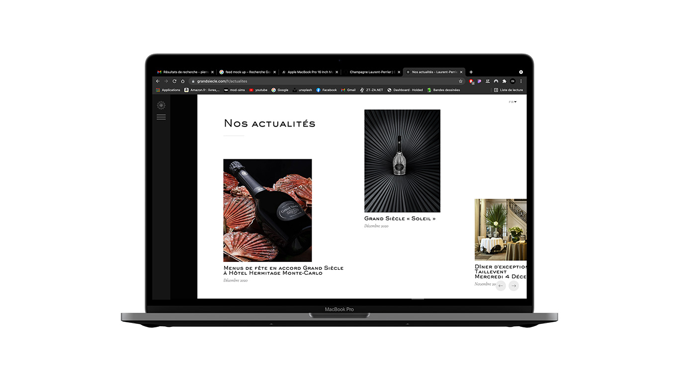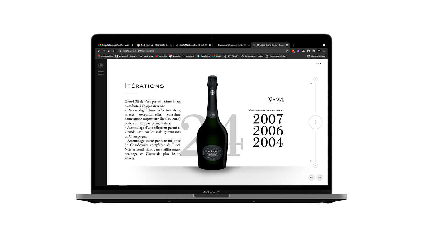 En combinant esthétisme épuré, animations subtiles et fluidité de navigation, ce site offre une expérience utilisateur unique, à l’image du raffinement et de l’exclusivité de la Cuvée Grand Siècle. Notre objectif est d’inviter les amateurs de champagne à plonger au cœur d’un voyage sensoriel et historique, où chaque détail témoigne du savoir-faire et de la quête d’excellence qui caractérisent Laurent-Perrier depuis plus de deux siècles.