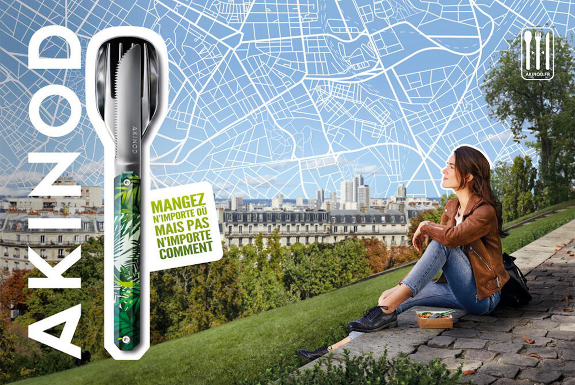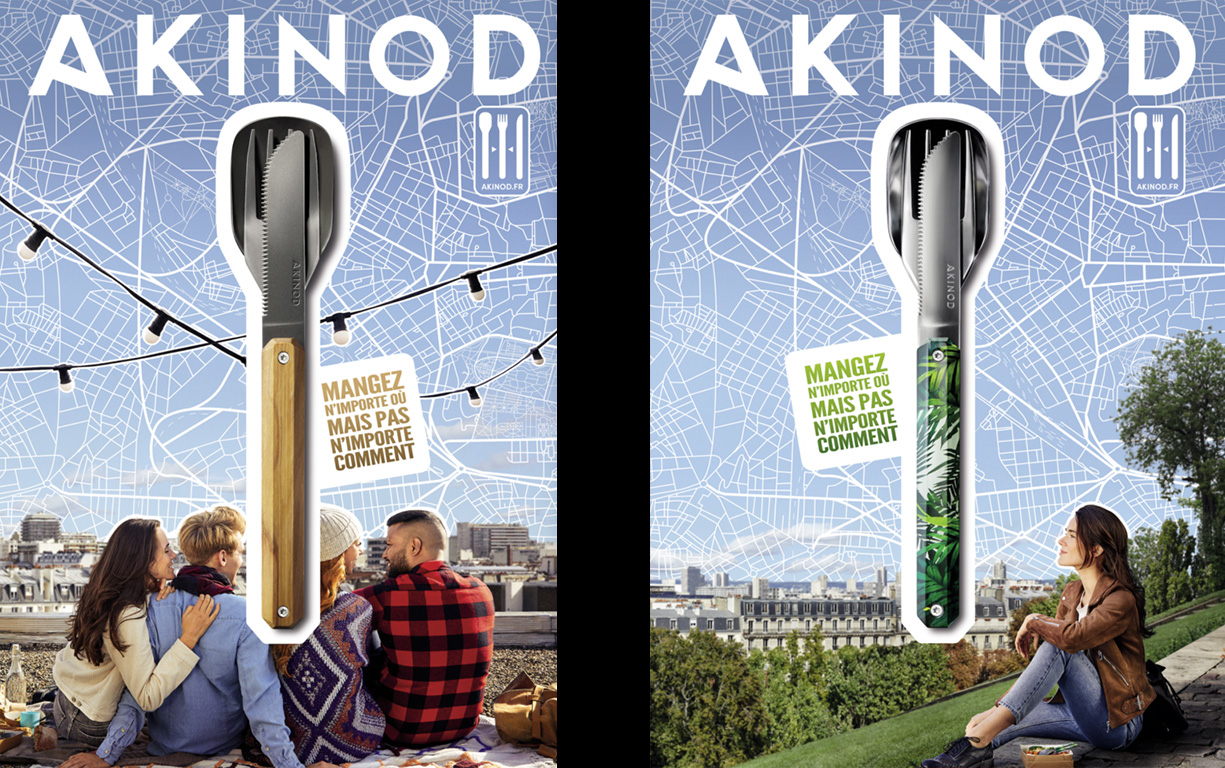 L’objectif principal de ce produit est d’offrir une solution pratique et élégante permettant de manger partout, en toutes circonstances. C’est pourquoi nous avons imaginé une campagne visuelle mettant en scène des lieux emblématiques de la ville, soulignant ainsi la liberté qu’offre Akinod aux amateurs de repas nomades. Ces visuels illustrent des moments de partage entre amis, où le repas s’intègre naturellement à la dynamique citadine. À travers cette approche, nous avons voulu refléter l’esprit d’Akinod : une marque qui allie praticité et esthétisme, pensée pour ceux qui aiment savourer leurs repas en extérieur, que ce soit lors d’une pause déjeuner sur un banc, d’un pique-nique improvisé ou d’un moment convivial en terrasse.