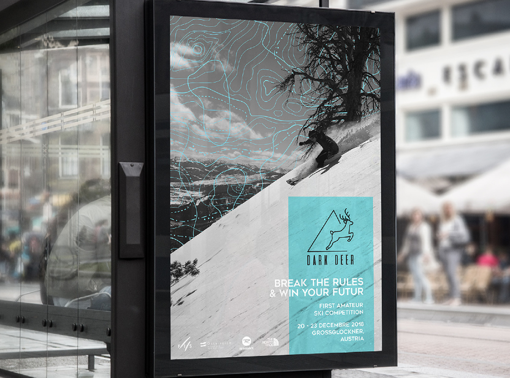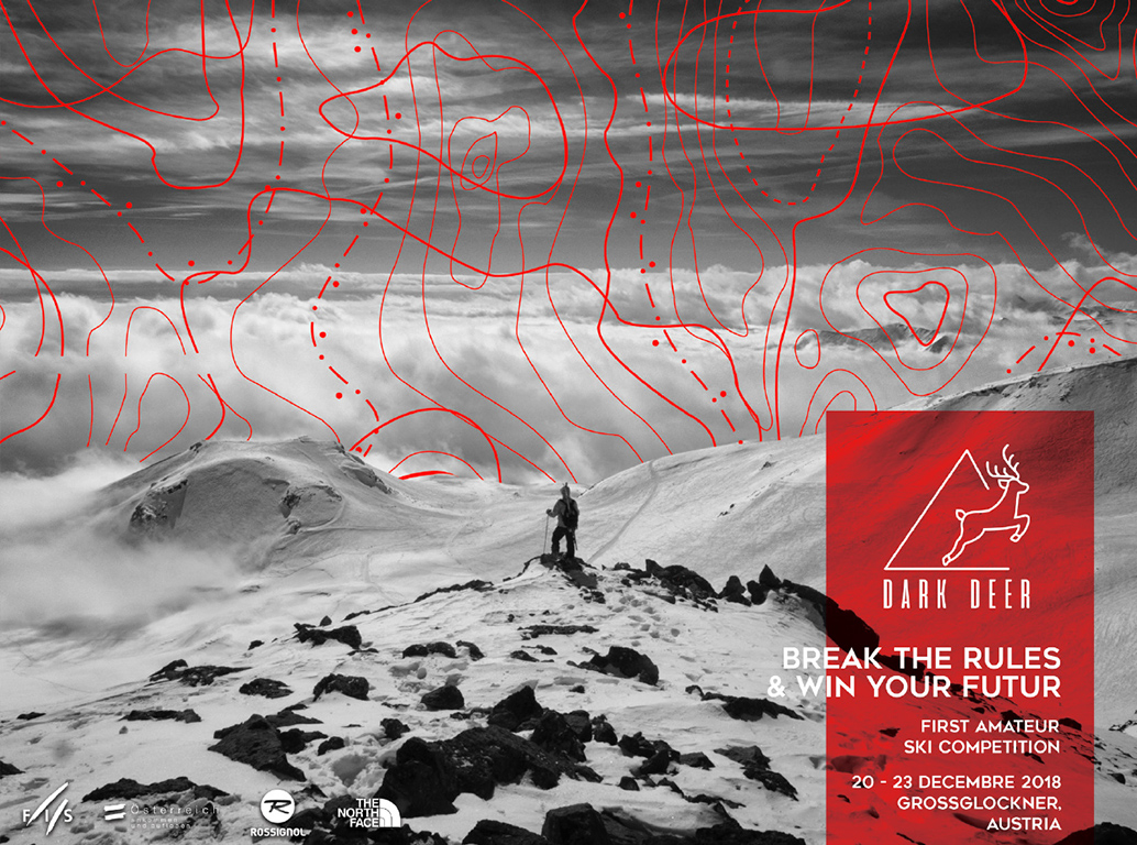 La Dark Deer est une compétition de ski amateur autrichienne qui offre aux skieurs amateurs l’opportunité unique de rejoindre le circuit professionnel. Afin de refléter cette ambition et de créer une expérience immersive pour les participants, nous avons conçu l’identité visuelle de l'événement en parfaite harmonie avec le pack d'équipement destiné aux compétiteurs. L'idée était de créer une image forte, dynamique et professionnelle, tout en mettant en avant l'esprit de la compétition et l’accès à un niveau supérieur de pratique du ski.