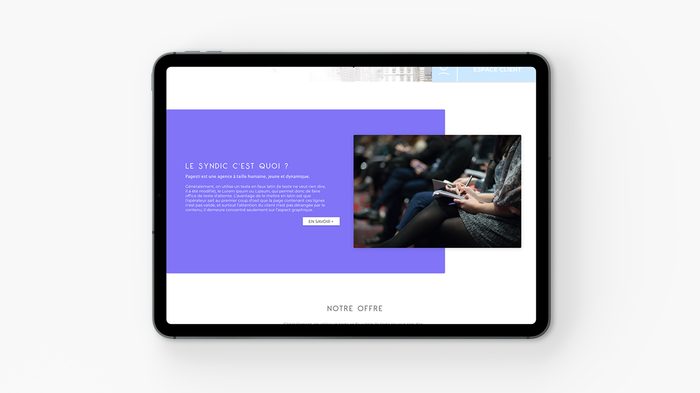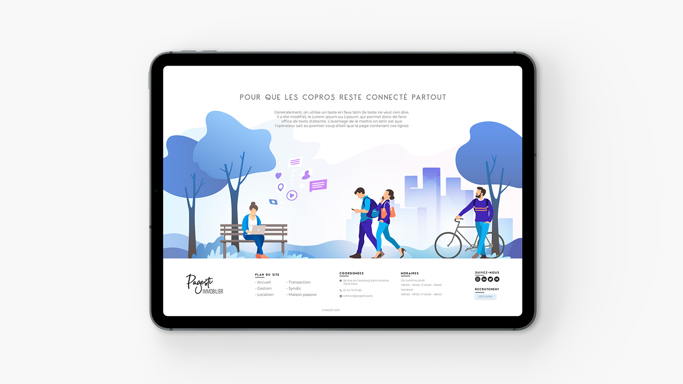 Nous avons poursuivi cette approche pour le site internet de Pagesti, en intégrant plusieurs illustrations faites à la main dans un design moderne et épuré. Cette combinaison permet de maintenir une cohérence visuelle entre l’identité du cabinet et son site, tout en assurant une clarté optimale de l’information. L'objectif était de créer une interface à la fois esthétique et fonctionnelle, facile à naviguer pour les utilisateurs, tout en restant fidèle à la philosophie du cabinet : une gestion de copropriété à taille humaine et accessible.