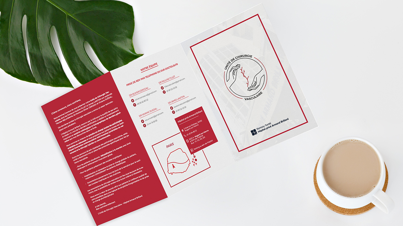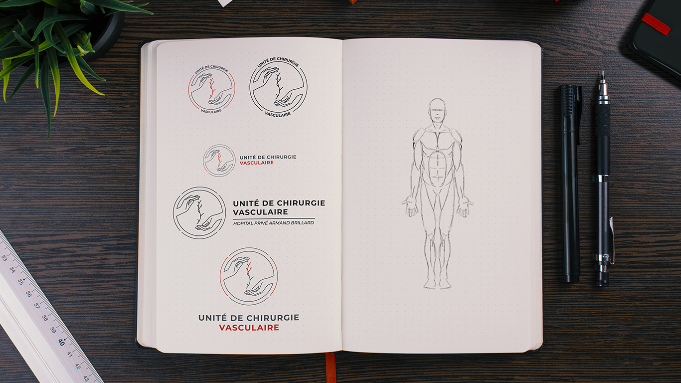 Cette association regroupe l'ensemble des chirurgiens vasculaires de l'hôpital Armand Brillard. Pour cette mission, notre approche a débuté par une phase de compréhension approfondie du métier de chirurgien vasculaire et de ses spécificités, un domaine qui nous était initialement peu familier. Il était essentiel de saisir les valeurs et les enjeux de cette discipline afin de traduire visuellement leur expertise de manière authentique et pertinente.